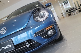 展示車もたくさんご用意しています。Volkswagen車の魅力を伝えるレイアウトを行っているのはもちろんのこと、時にはモデルのコンセプトに合わせて愛らしい装飾を施すこともあります。