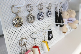 ショールーム内では、Volkswagenオリジナルグッズを取り扱っています。Volkswagenのマークやミニバスをモチーフにしたキーホルダーをはじめ、バラエティ豊かなグッズが揃っております。